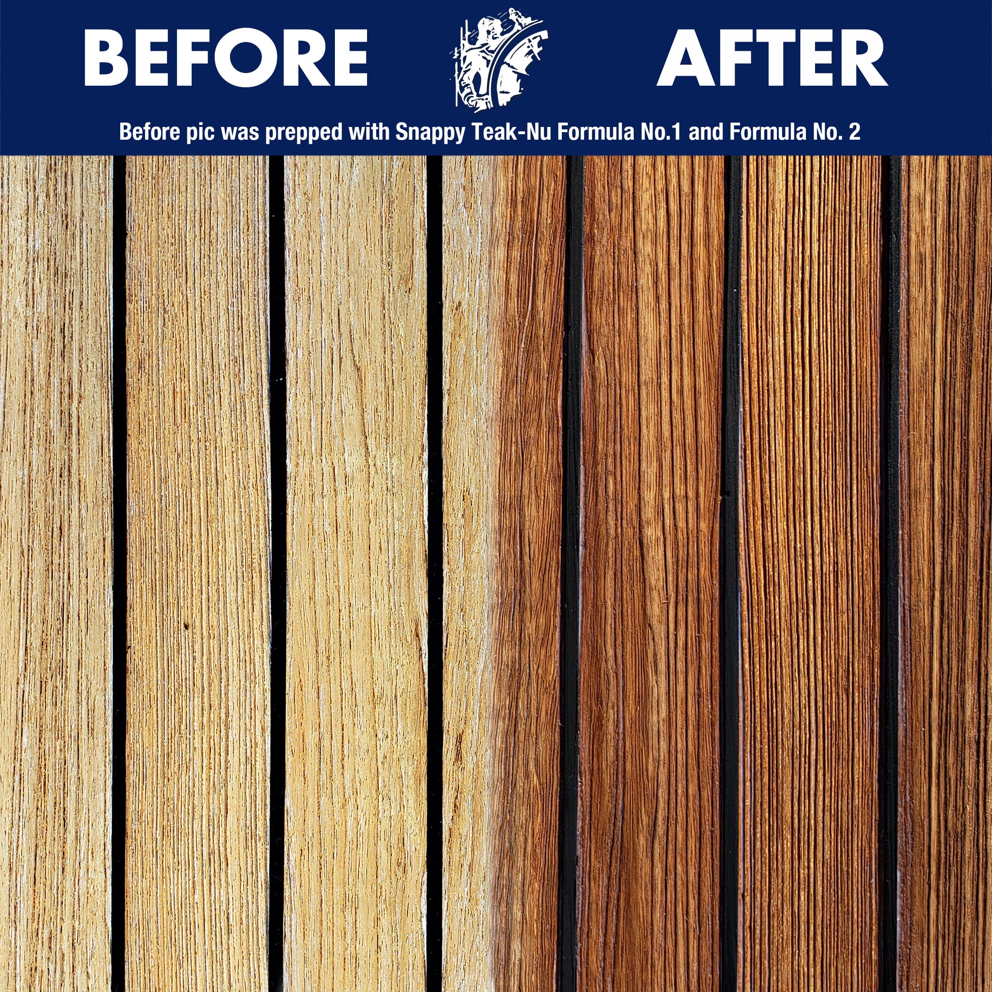 DIRECTIONS: Clean with Snappy Teak-Nu Formulas 1 and 2 if needed. Apply with a cloth, sponge, or brush along the grain. Wipe off excess after 5 minutes. Repeat for porous wood. Reapply at signs of weathering.