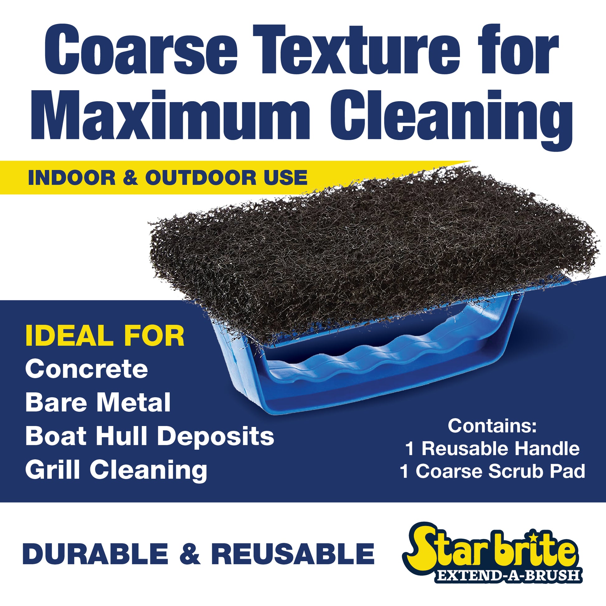 - COARSE TEXTURE FOR MAXIMUM CLEANING POWER - Ideal for concrete, bare metal, boat hull deposits and grill cleaning