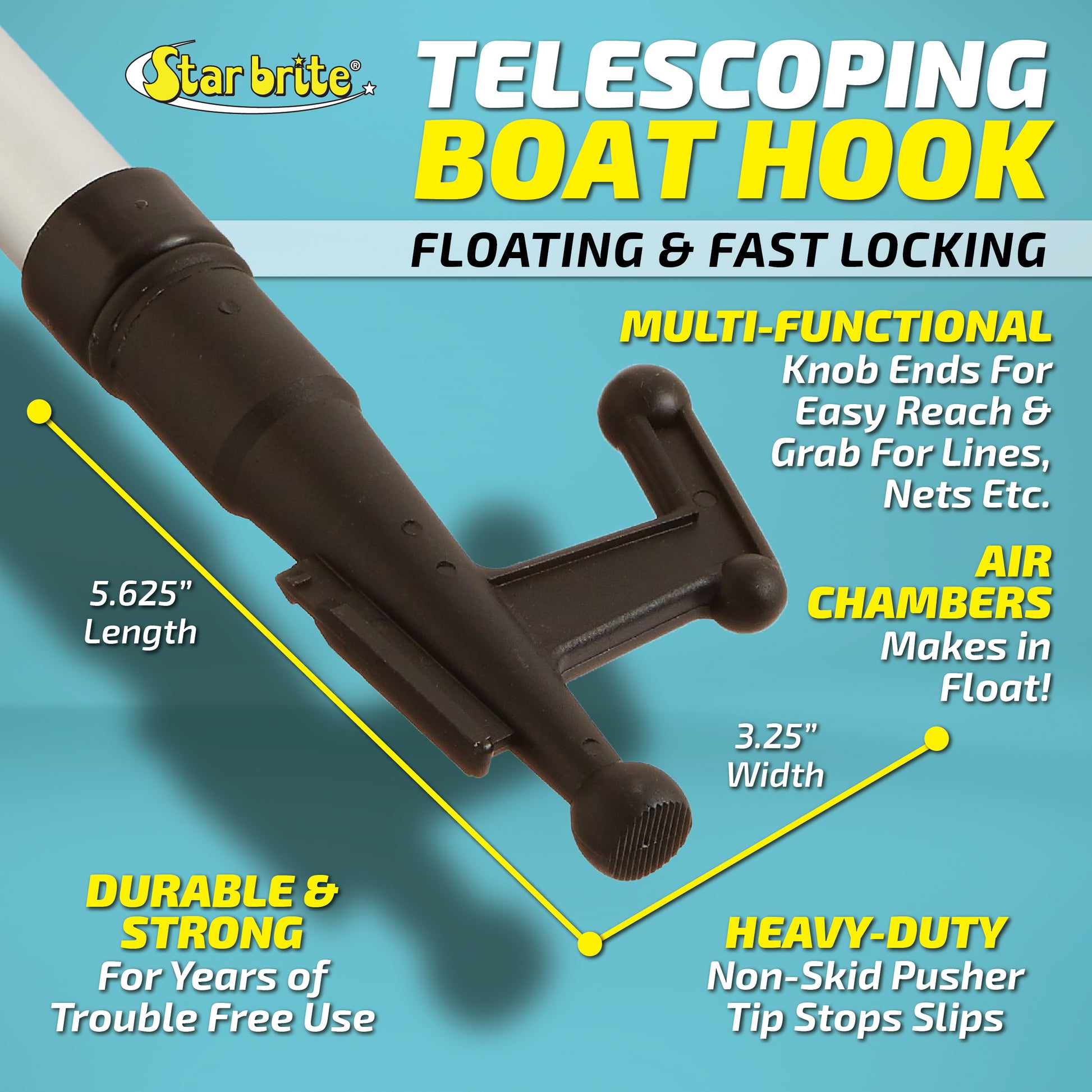 The Star brite Extending Boat Hook is a multi-purpose essential for every boater. Crafted from lightweight, corrosion-resistant aluminum, this telescoping pole extends from 4.5 feet to 8 feet, giving you reach when you need it most. The molded high-impact hook helps with docking, grabbing lines, fending off pilings, and retrieving gear. Designed with a non-slip handle for secure grip and engineered to float if accidentally dropped, this boat hook is built to perform in real-world marine conditions. Ideal for both seasoned sailors and weekend cruisers.