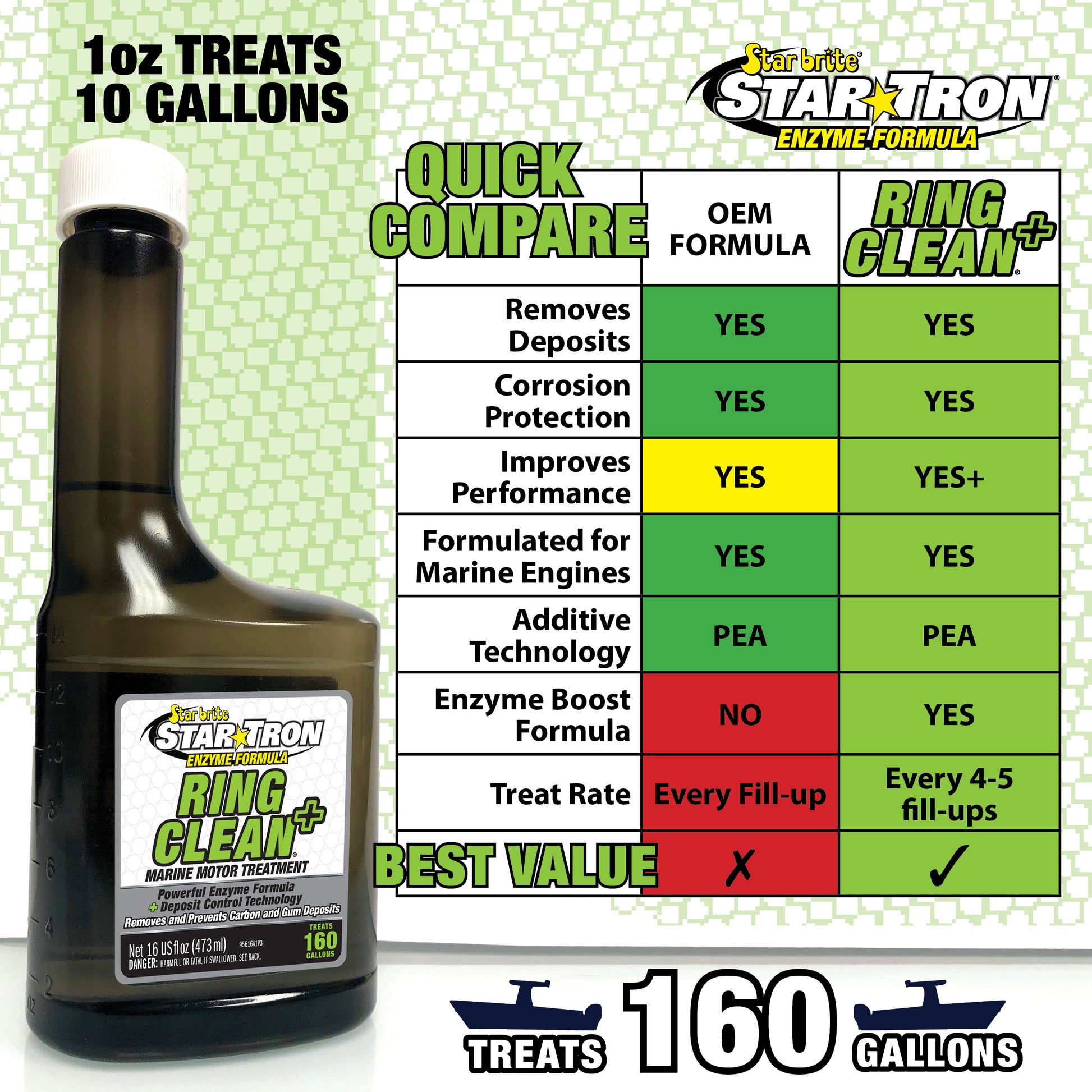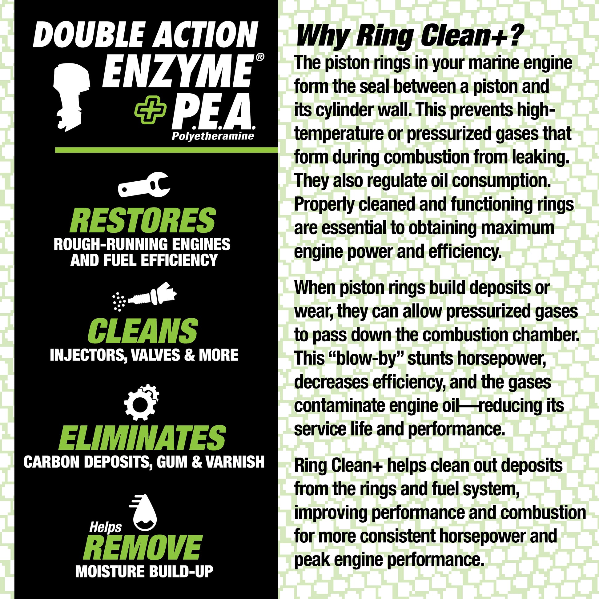 Star Tron® Enzyme® Formula Ring Clean+® is formulated with the latest technology for deposit control, plus a proprietary enzyme package designed to remove the toughest deposits while helping to prevent the formation of new deposits.