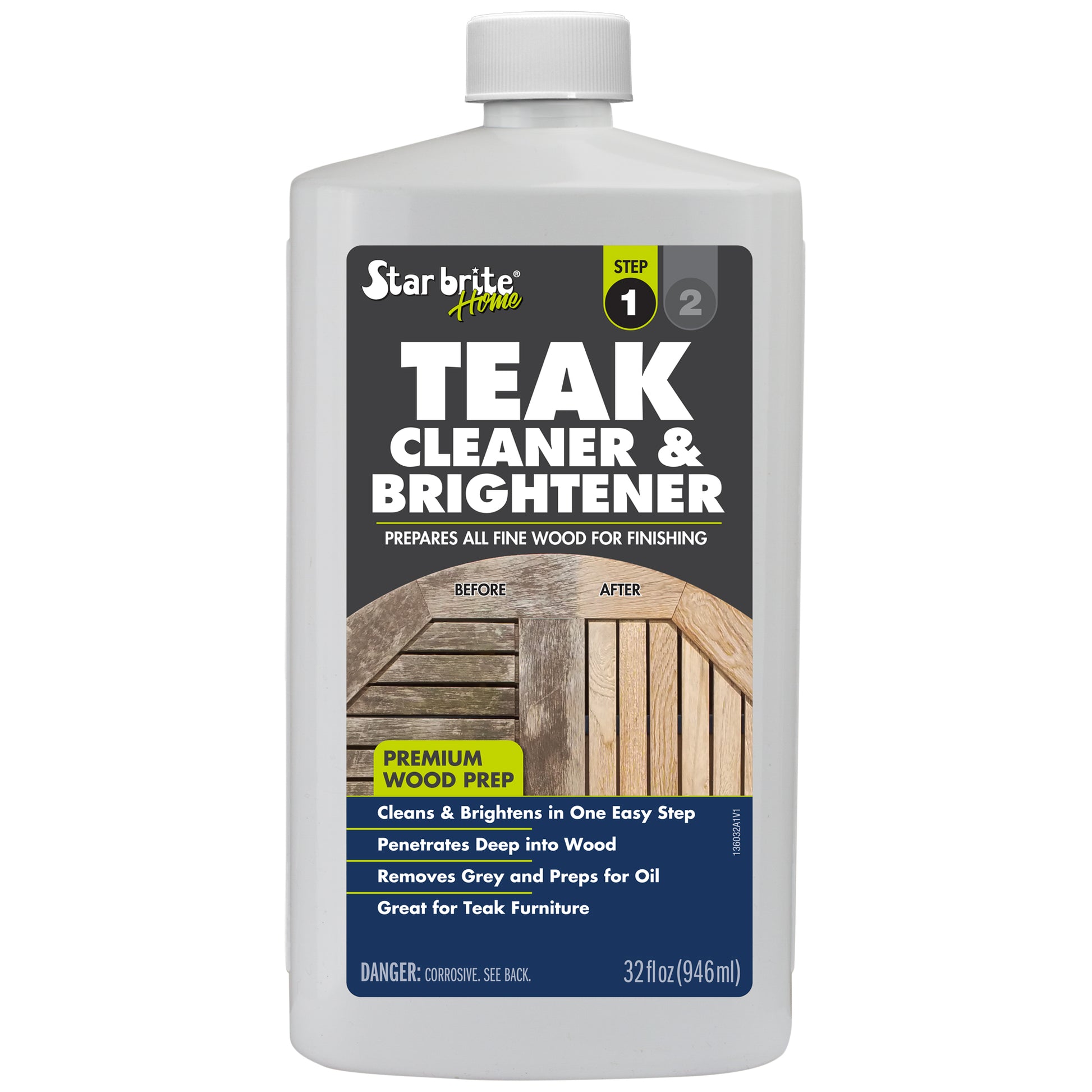 DIRECTIONS: For lightly weathered or dried-out teak: Wet wood with fresh water. Apply Star brite Teak Cleaner & Brightener and spread with a brush. Scrub lightly to remove dirt and stains. Rinse thoroughly with fresh water.