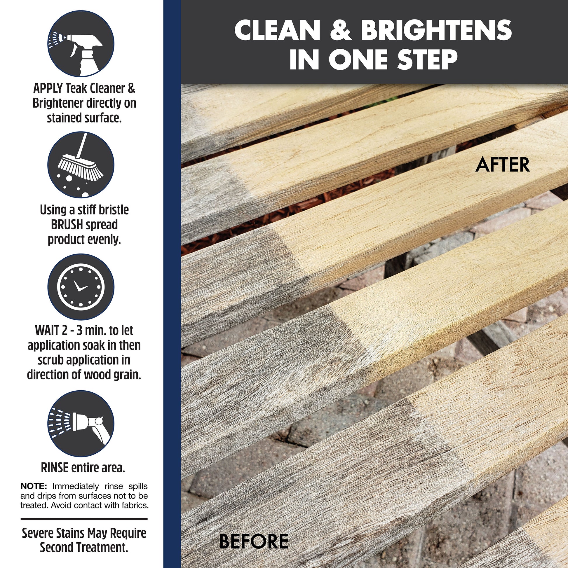 - 2-IN-1 CLEANER & BRIGHTENER - Removes dirt, stains, and graying while brightening teak and fine wood surfaces.